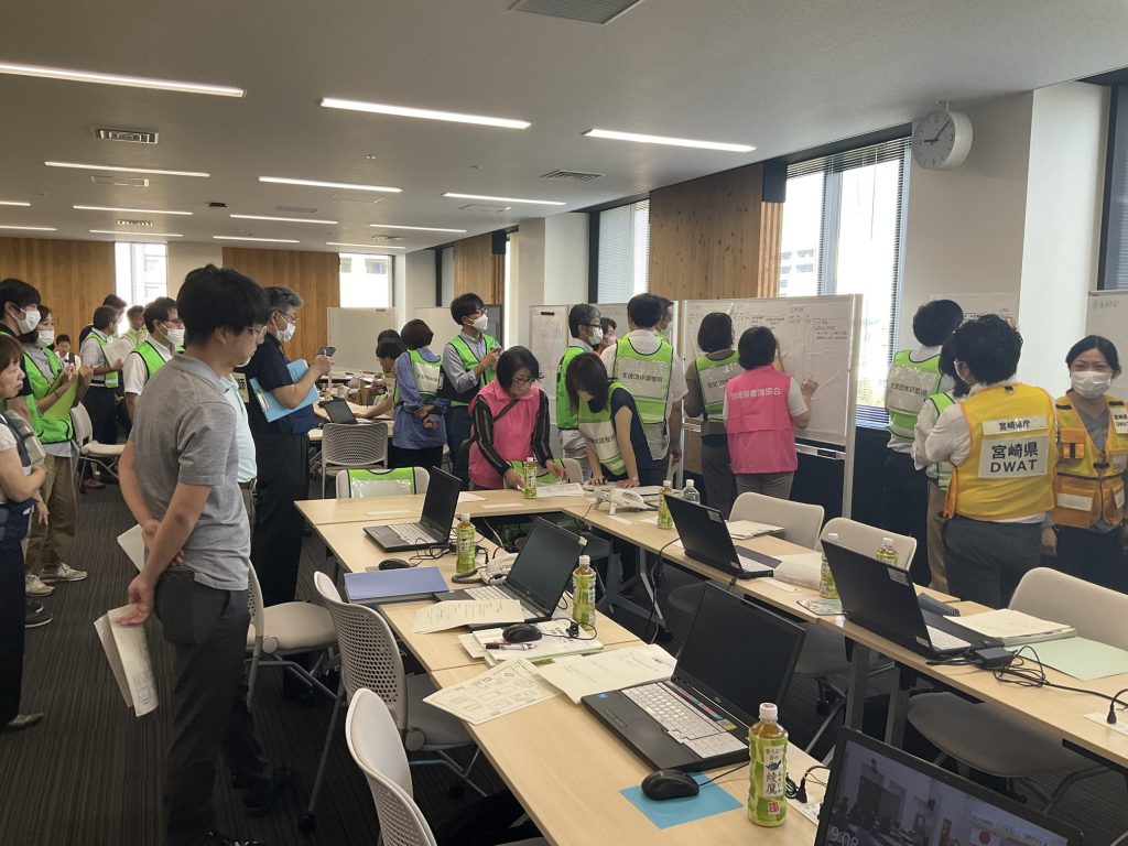 訓練内容としては,1つの仮想の保健所が災害により機能停止したと想定し,保健医療福祉調整本部が派遣調整を行うといったものでした.